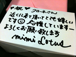 これはhusの2階にある紅茶とスコーンの専門店ミミ・ロータスさんから いただいたワッフルの箱に書いてあったメッセージ(涙)。