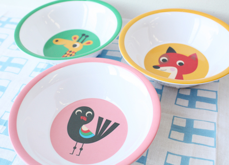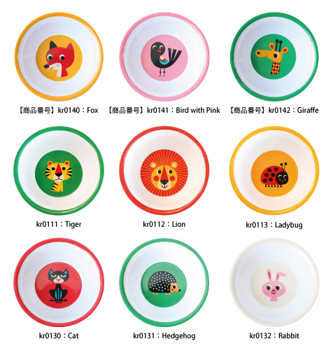 スウェーデンOMM-designのメラミンボウル新3柄(フォックス、バードピンク、ジラフ)が